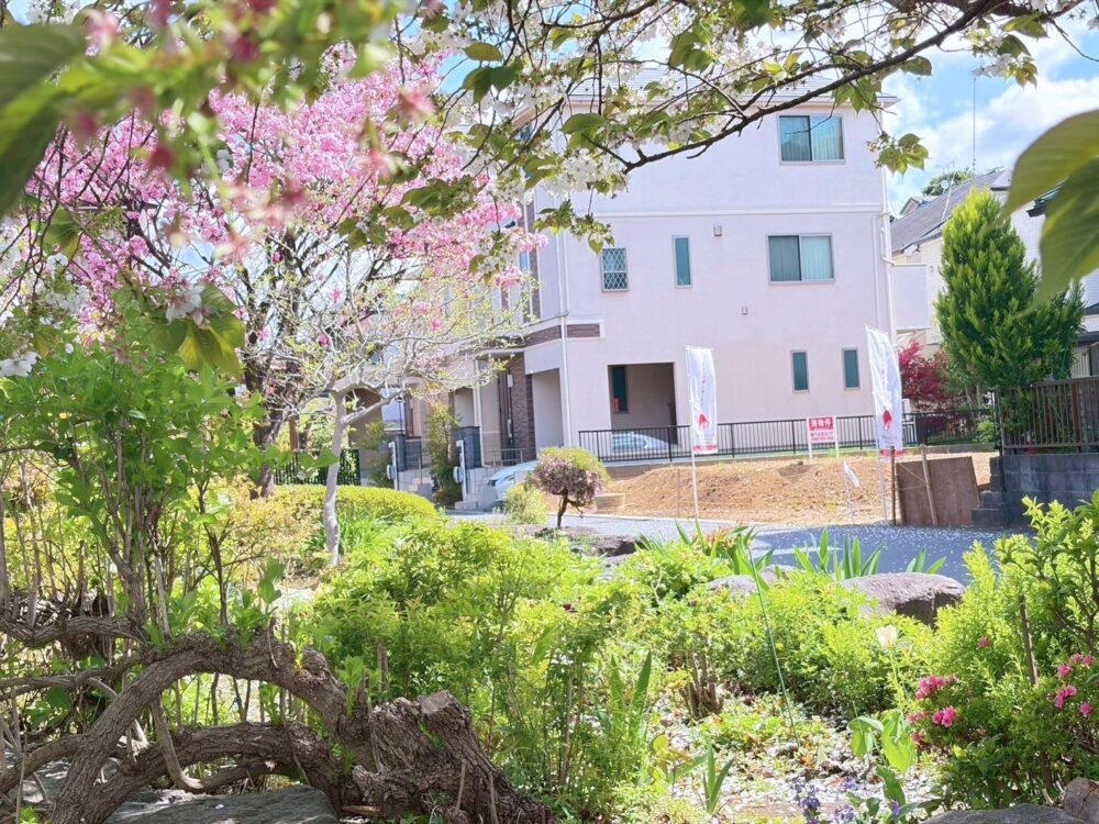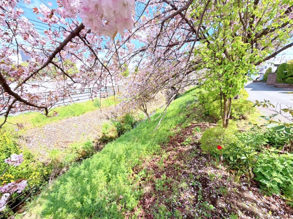 目の前には川が流れ、緑豊かで閑静住宅地。