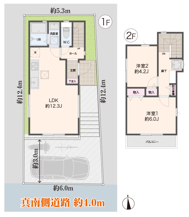 段差や階段のストレスなく暮らせます広めのカースペース(幅約3m)を確保