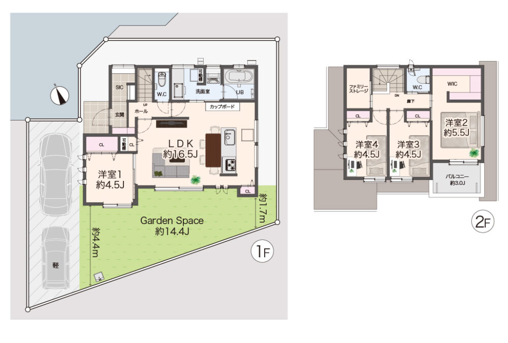 間取りタイプ 4LDK+WIC+SIC+下屋根収納 -