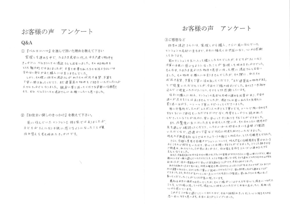 マンションの売却に至るまで、本当に幅広くお世話になり、心から感謝